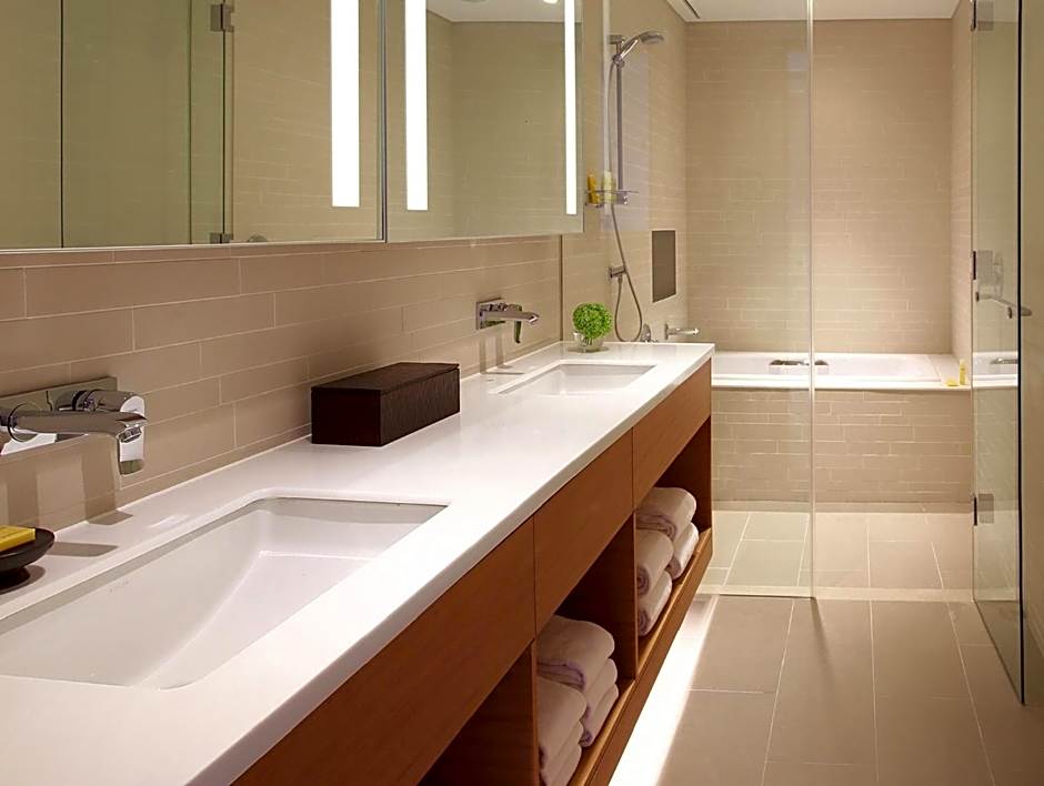 The Grand Deluxe Executive Suite rooms are 95 sq m (1,022 sq ft) of space, including a living area and an in-room bar. The living room, with all-glass windows, provides a feeling of openness and allows you to enjoy the beautiful sunset of Yeongjong Island and the unique view of Incheon International Airport. This is a premium suite. See World of Hyatt program terms for upgrade eligibility.